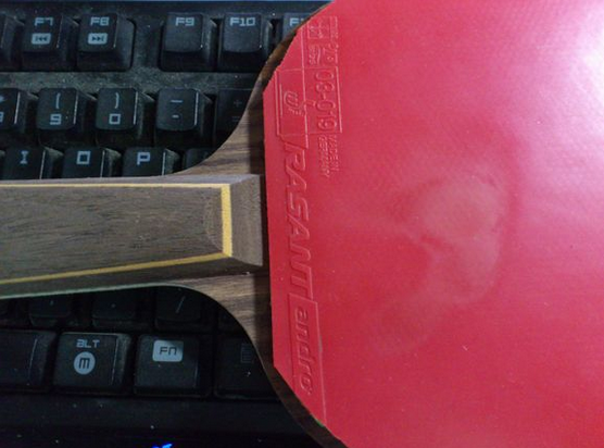 首先拿到板子我敲了下,聲音不錯。隨即板子膠皮刷了一面無機粘好當天就去打球了。